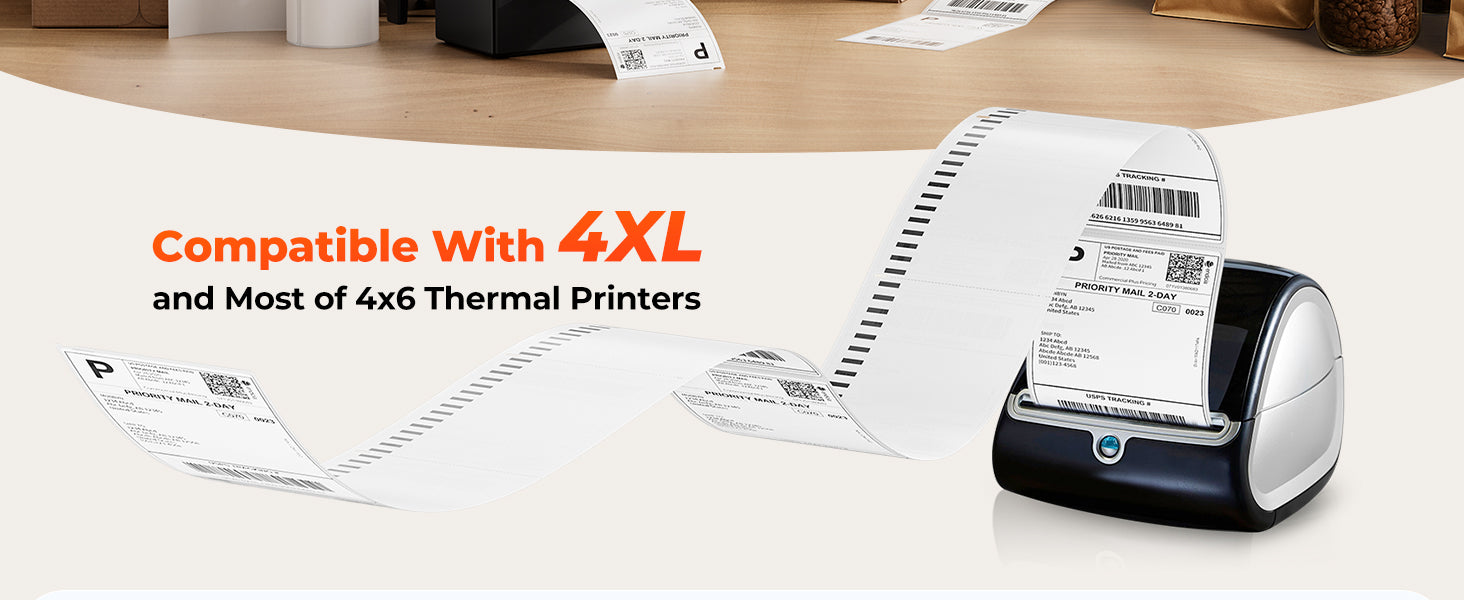 Our printers support a wide range of direct thermal labels, including 4×6" shipping labels, 3×2", 2×1", barcode labels, round labels, and custom sticker sizes (40–110mm width depending on the model).