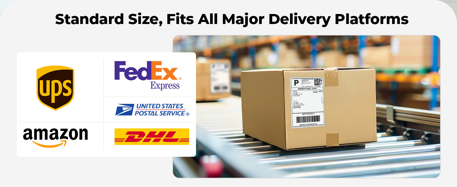 Multi-platform Compatible: Print shipping labels and internet postage labels for transportation platforms and e-commerce platforms. Compatible with Fedex, Usps, Ups, Shopify, Etsy, Amazon, eBay, Paypal, Poshmark, Depop, Mercari, etc.