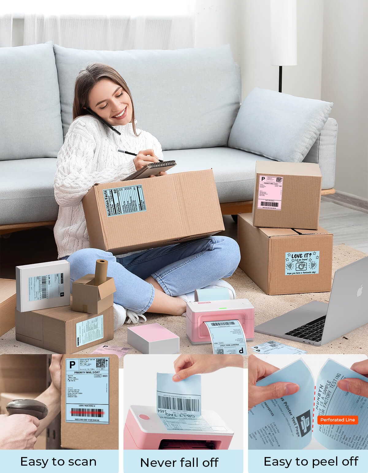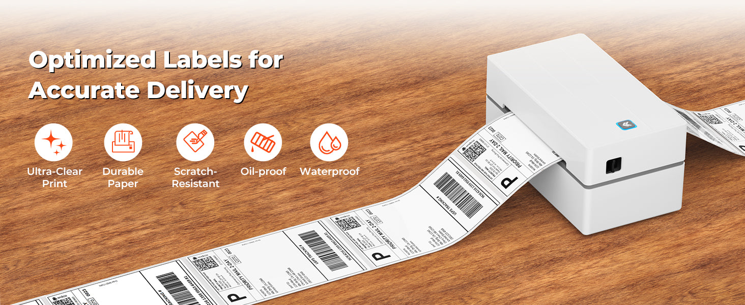 Reliable Upgrade Materials: The thermal labels are upgraded materials that print crystal-clear images and easy-to-read barcodes. They are brighter than the leading brand and have significant resistance to smudges and scratches.