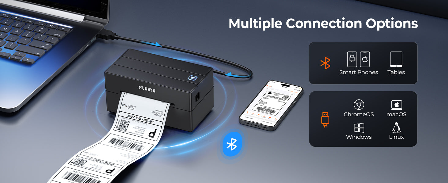 MUNBYN label printers work with Windows, Mac, Chromebook, iOS, Android, and most tablets.