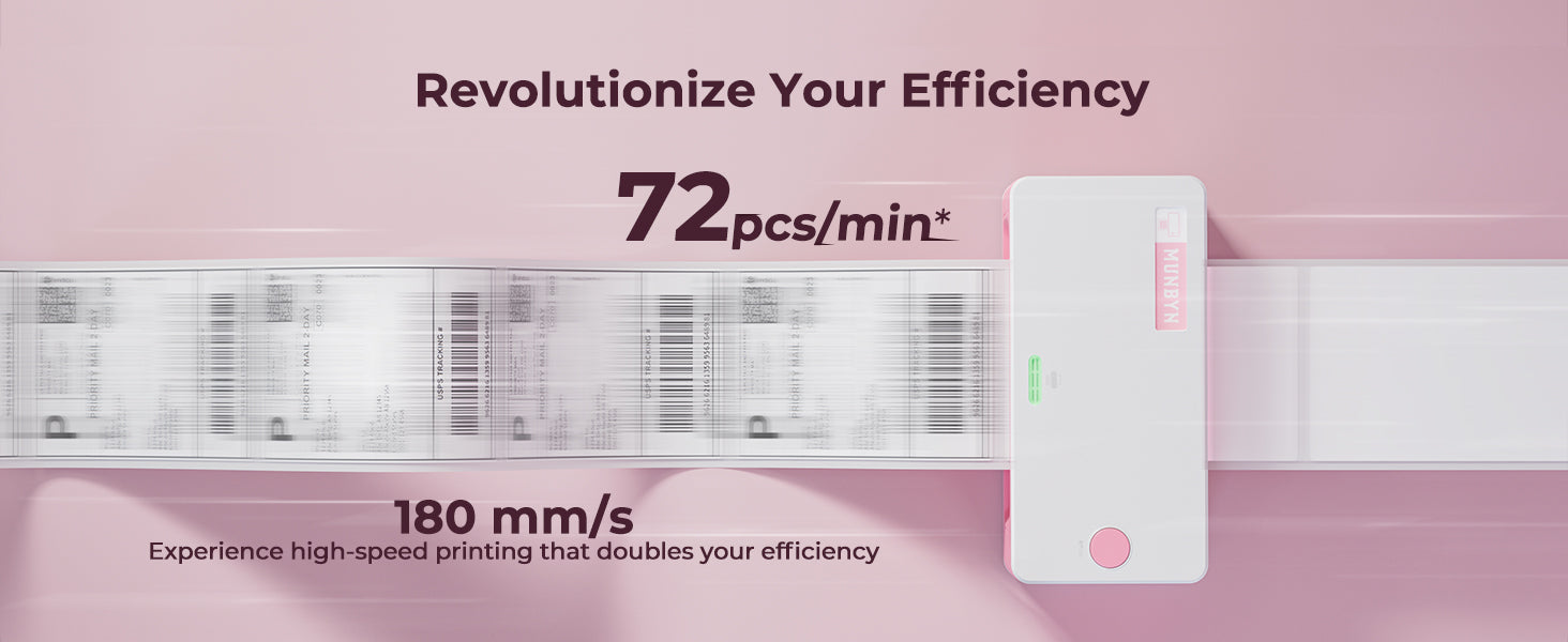 • High Speed & Clear Printing. Equipped with Japan ROHM print head. 180 mm/s (up to 5000+ labels per day) with no jams. It handles label widths from 1.57" to 4.3" (40-104mm), making it perfect for all your labeling needs.