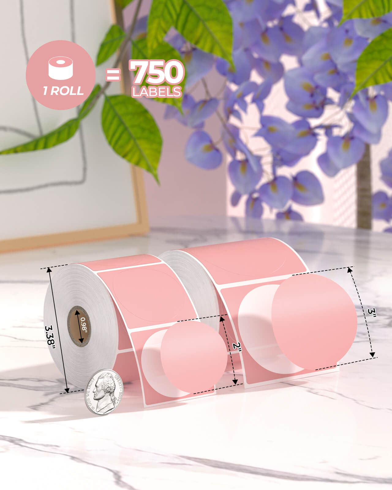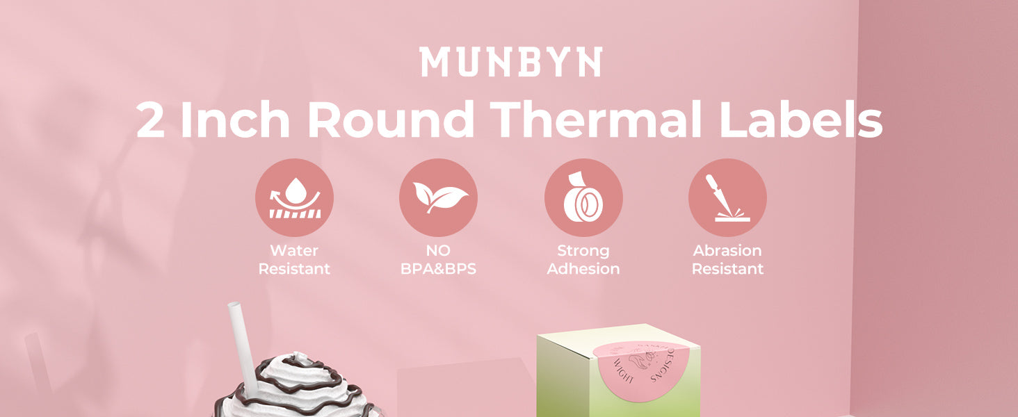 -Munbyn Generic Circle Series Labels (GR): Featuring 750 labels per roll (2" circle, 1 roll, white), these circle label stickers require no ink, toner, or ribbons. With a 0.98" paper tube diameter and a 3.38" paper roll diameter.