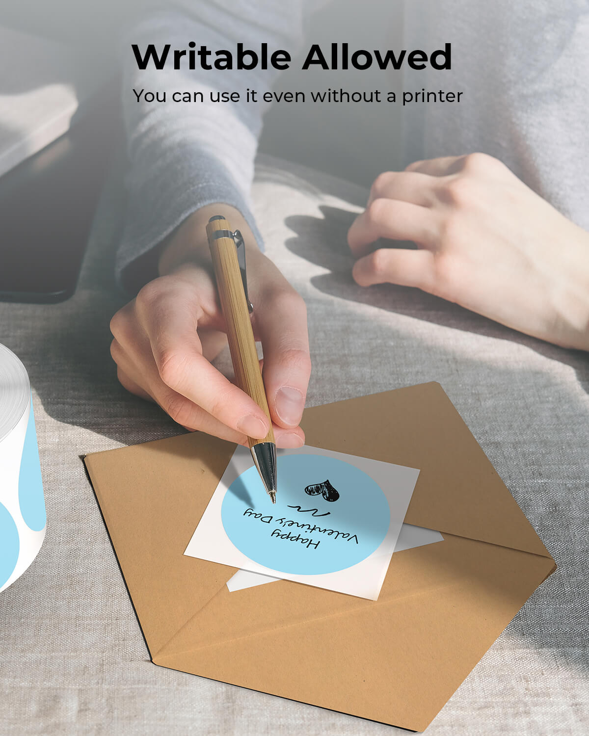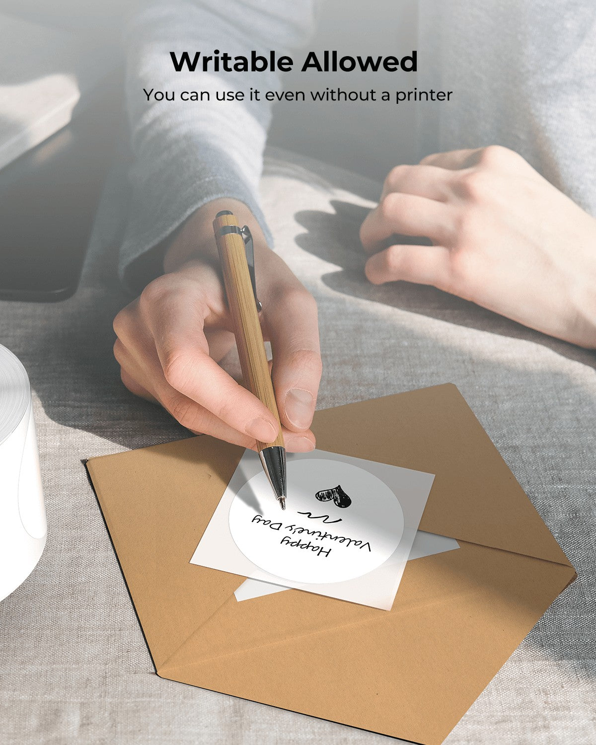 -The round sticker roll is large because it contains 750 labels. If you have a small label maker, but still want to use this thermal label to accommodate your printer, you detach the amount you need and wind it around the spool.
