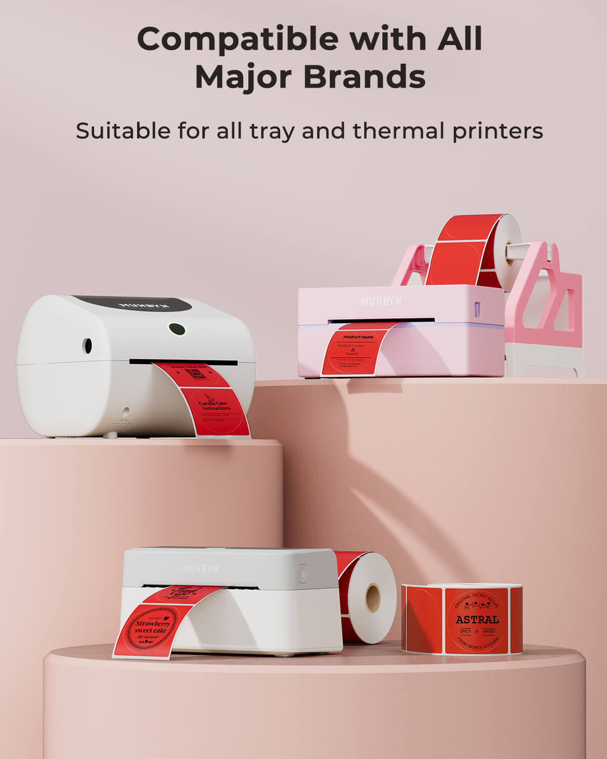 -Wide Compatibility: These round labels are compatible with Munbyn RW402B, 130B, 941BP, 129B, 941U, 941AP, RW401AP, RW403B, Rollo, Idrpt, Polono, Jiose, K Comer, Labelrange, Offnova, Jadens, Phomemo, Neflaca, Zebra, Mflabel, Arkscan, Besteasy, and other direct thermal printers. (Not compatible with Dymo or Brother printers.)