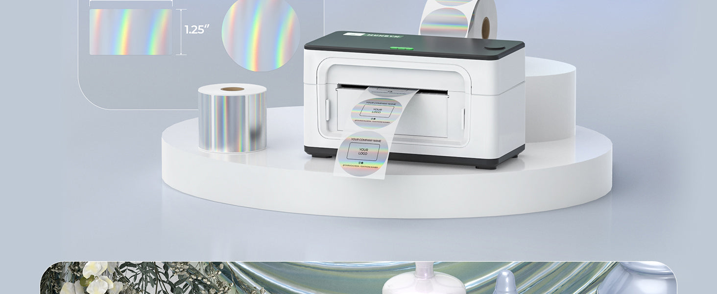 Logo stickers, thank-you labels, QR codes, product info labels.