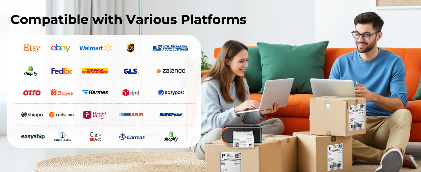 • Wide Platform Compatibility – This shipping label printer is compatible with Amazon, eBay, Shopify, USPS, UPS, Etsy, PayPal, Poshmark, DHL, and more. (Note: Save shipping labels as PDF before printing.)