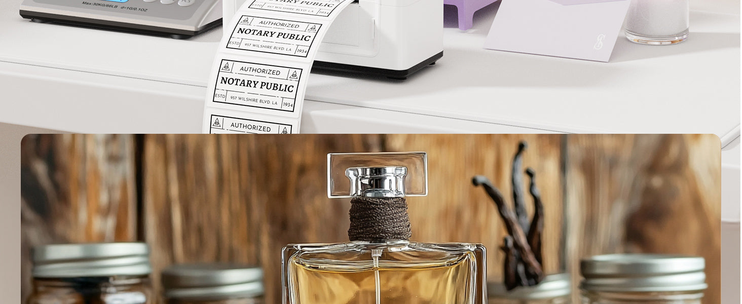 Logo stickers, thank-you labels, QR codes, product info labels.