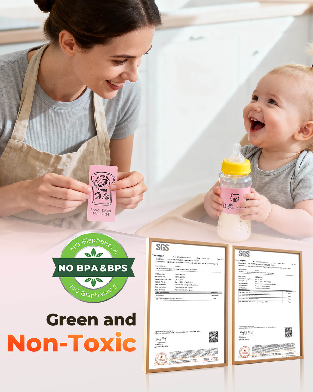 • Safe and Waterproof: Tested to be free of harmful chemicals such as BPA and BPS, ensuring they are pollution-free, and are waterproof and oil-proof, so barcode labels is no need to worry about the label paper being wetted by water and the writing being blurred