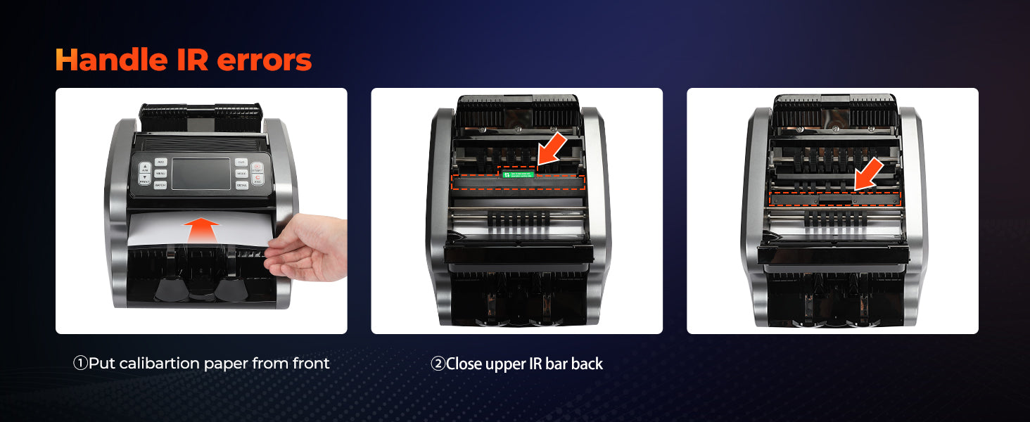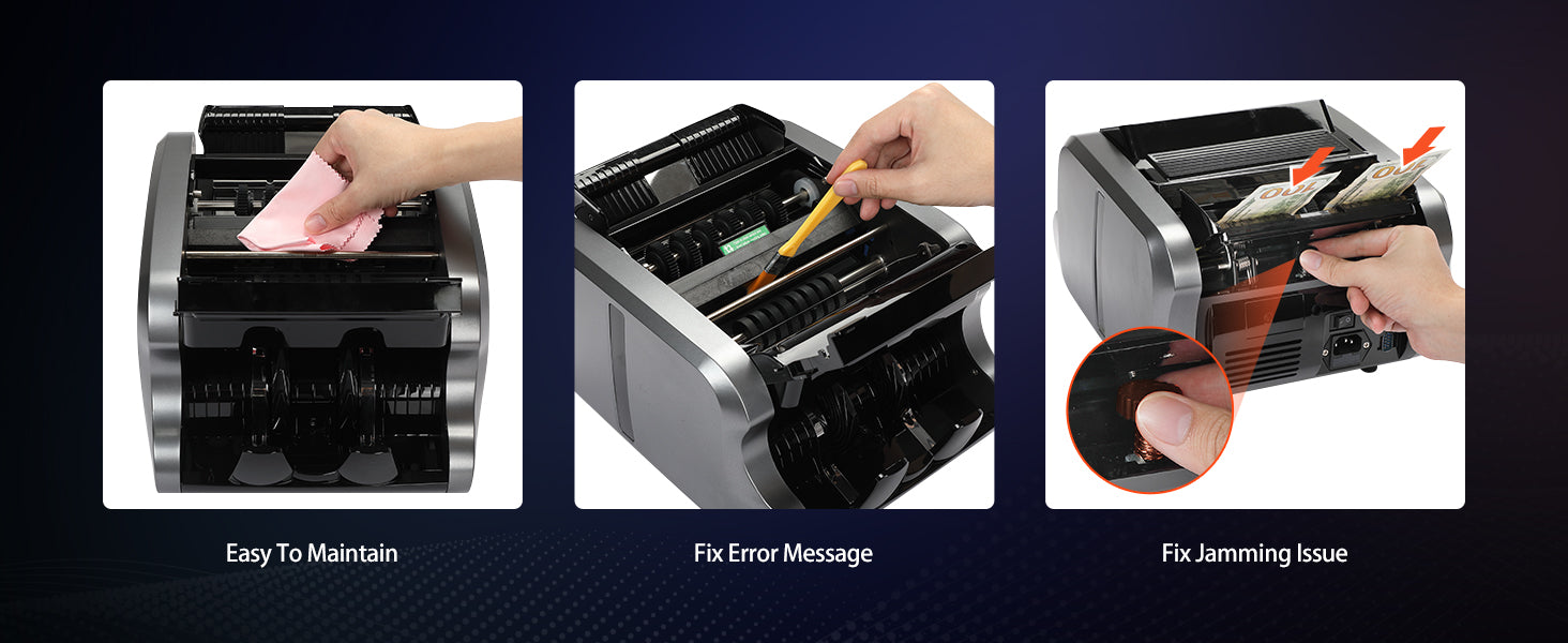 - [Note] ①Please put the bills in the right way to avoid the error report! ②Please connect using 110V voltage.