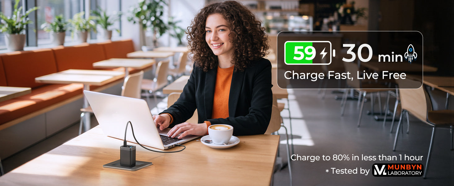 - Fast Charging Tech: this advanced GaN III 65W charger powers your MacBook Pro 13" from 0% to 59% in just 30 minutes—perfect for urgent deadlines, back-to-back meetings, and last minute charging