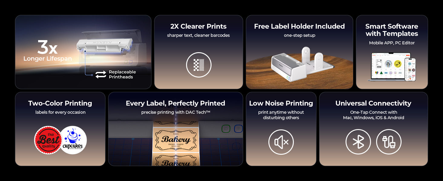 - Exclusive Dual-Color Label Power: Elevate your branding with MUNBYN Black/Red or Black/Blue dual-color labels (sold separately). Create striking two-tone designs effortlessly using our free apps – make your labels stand out!