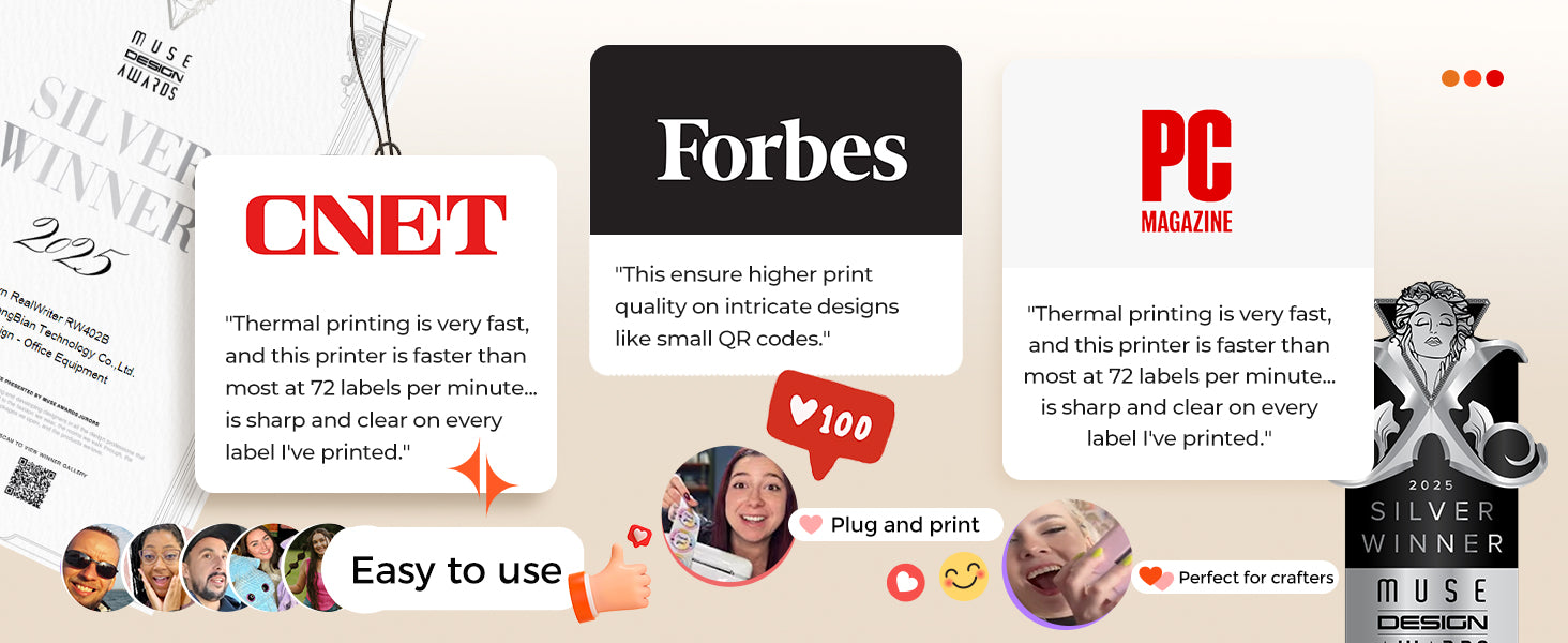 From 4×6 shipping labels to 2×2 logo stickers and a wide range from 40mm to 110mm wide, switching between tasks takes only seconds.