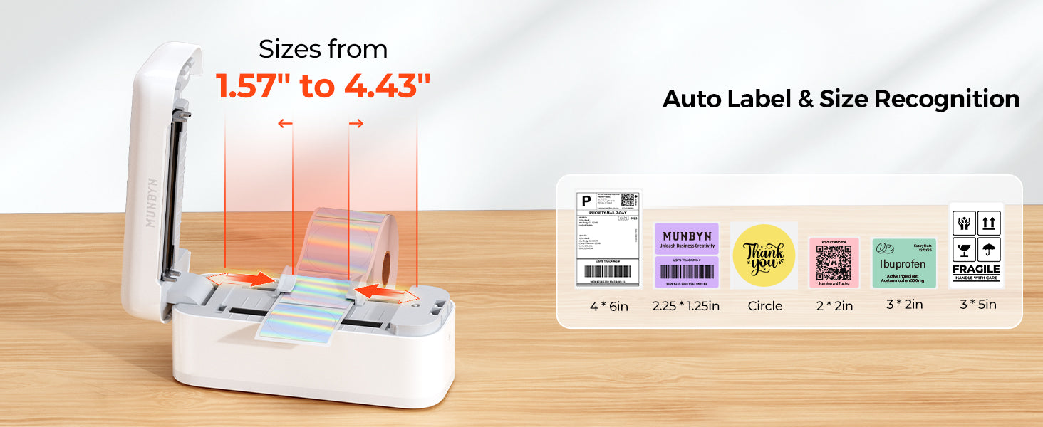 Your MUNBYN printer automatically recognizes and adjusts to different label sizes—no manual setup needed.