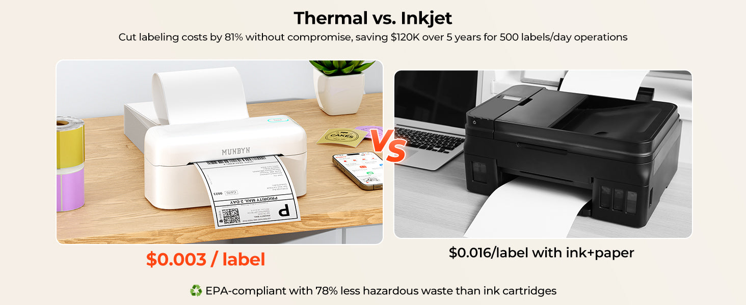 No ink or toner is needed. All MUNBYN printers use direct thermal printing technology—just load the thermal labels and start printing.