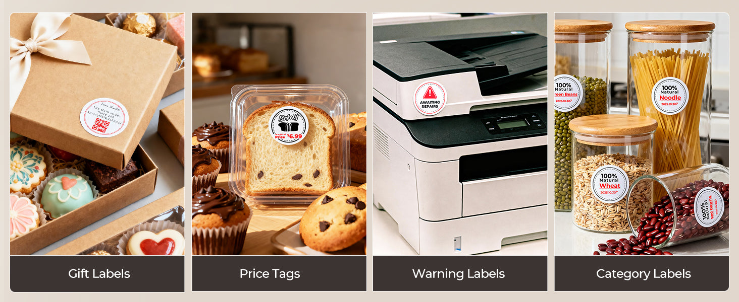 - Versatile Dual-Color Printing Stickers: These labels fully meet the needs of various scenarios. Suitable for organizing labels in schools and offices, retail price tags and product labels, kitchen organization and baking supply labels, shipping and package identification, Logo printing, jewelry tags and accessories, medical/hospital use, stationery, crafts, and more.