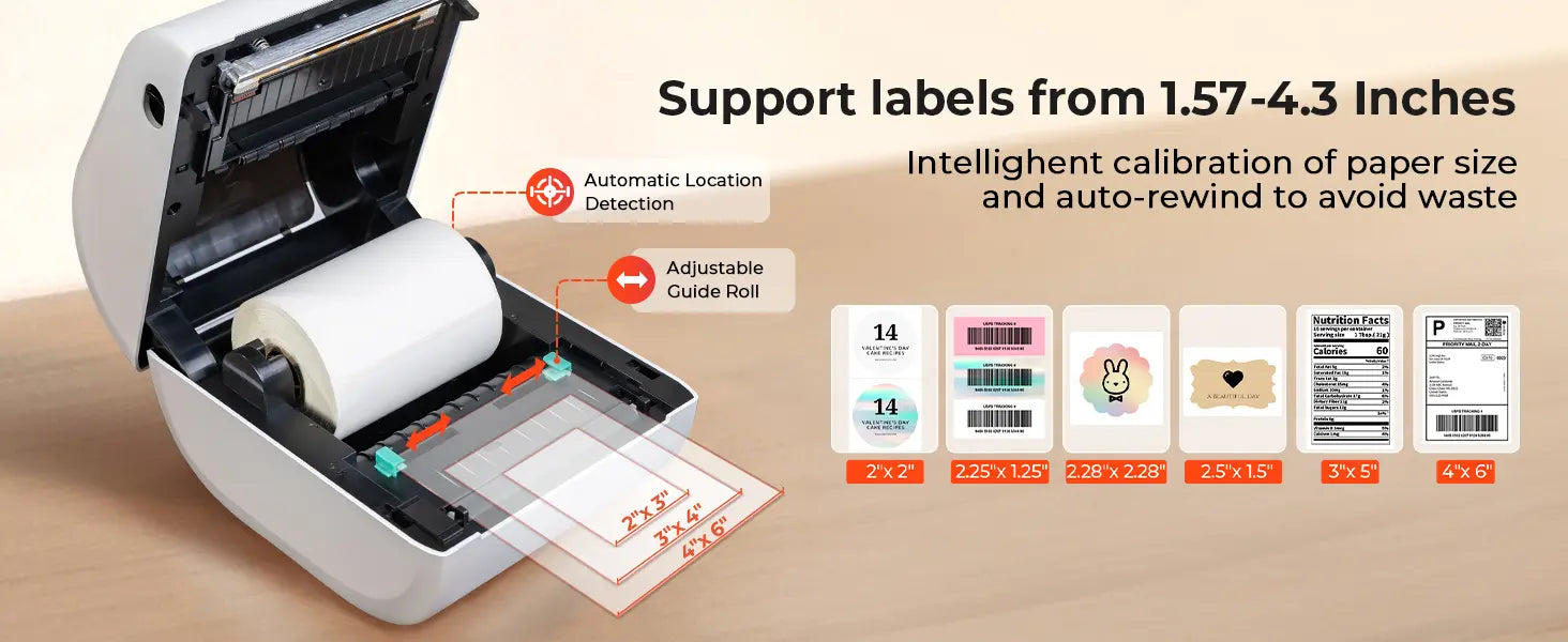 - Versatile: This 4x6 thermal label printer supports printing labels in a variety of sizes, ranging from 1.57" to 4.3" (40 mm-110 mm), to meet your diverse needs. Whether it's for office document.