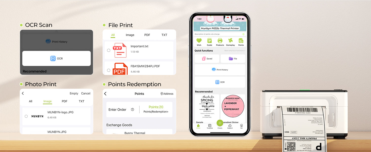• Save Time & Money. Works with any direct thermal labels. You don't need Ink and toner. Automatic fallback function, make full use of each paper.