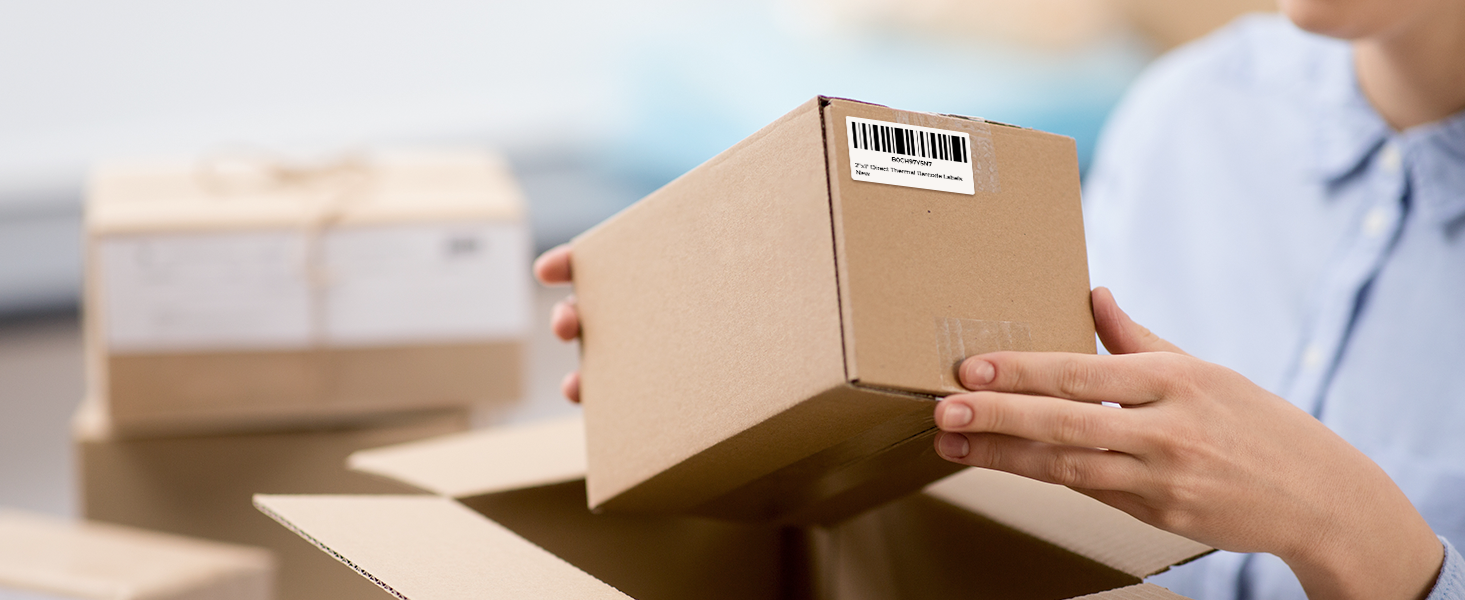 Shipping labels, product tags, barcodes, return labels.