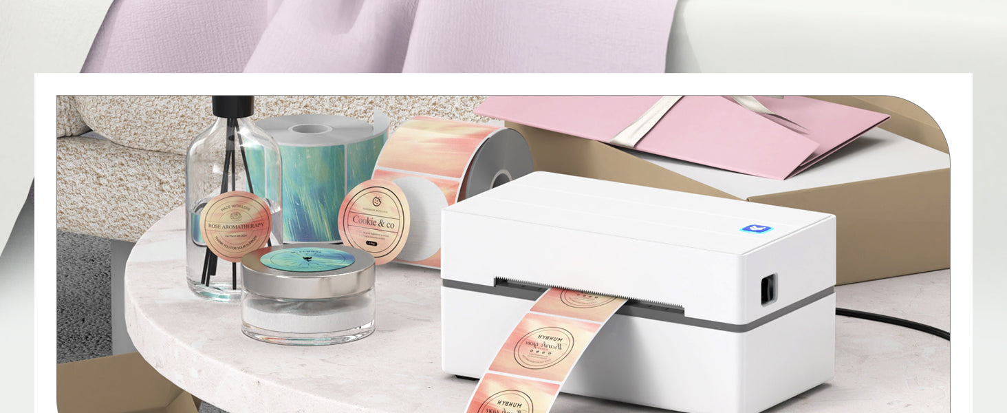 Our printers support a wide range of direct thermal labels, including 4×6" shipping labels, 3×2", 2×1", barcode labels, round labels, and custom sticker sizes (40–110mm width depending on the model).