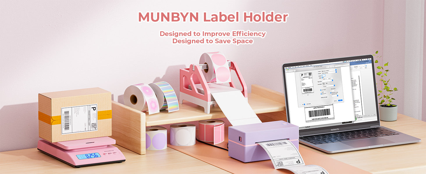 • Quick Installation: MUNBYN Label Holder is easy to assemble and disassemble, with only 5 parts. This label holder is ideal for holding and storing thermal label paper and is ideal for keeping your office desk organized