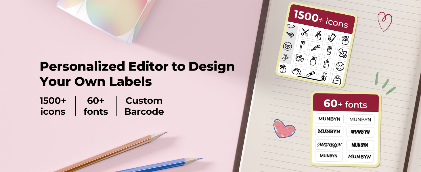 Logo stickers, thank-you labels, QR codes, product info labels.